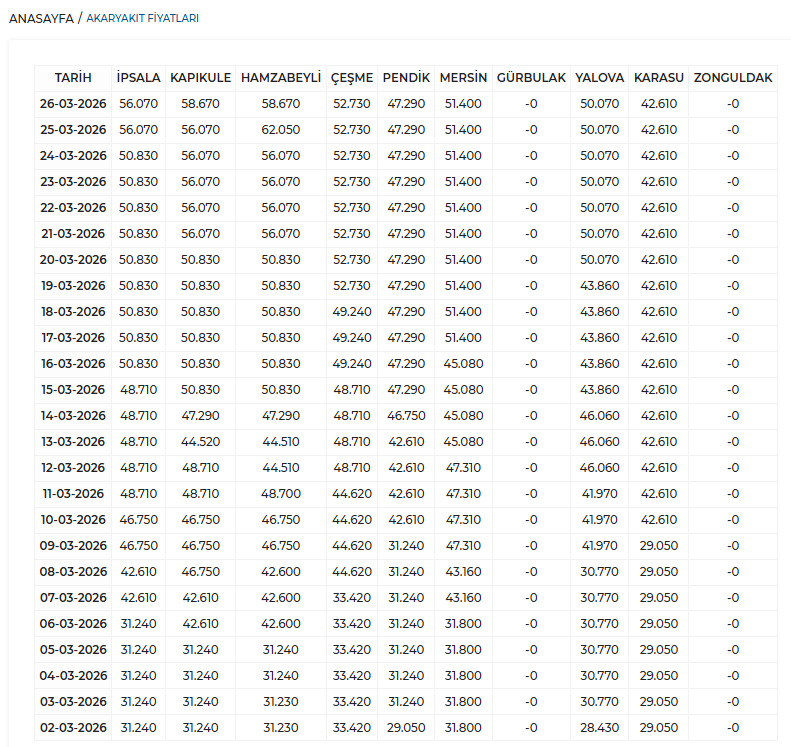 | İstanbul (Pompa) | ~60.32 TL | 74.87 TL | ~%24 |